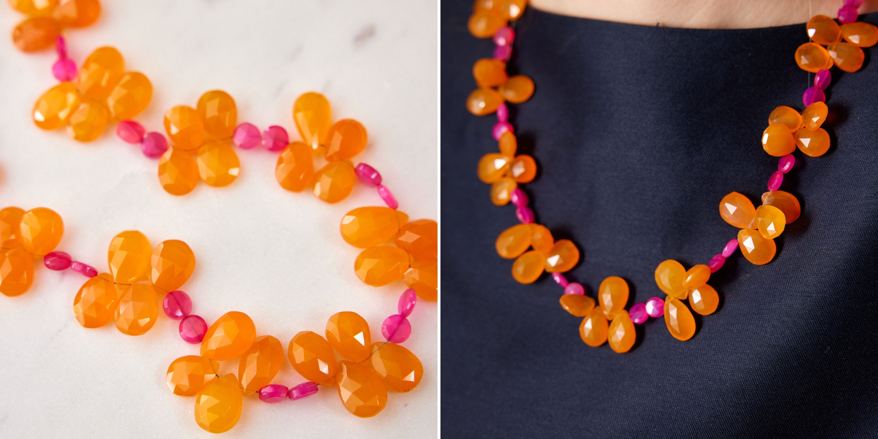 *colorful dyed jade necklace with a gold-plated hook & eye clasp